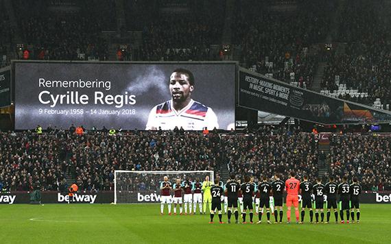 London Stadium paid tribute to Regis with his image on the scoreboard and a round of applause from players and spectators, whilst players also wore black armbands.Â
